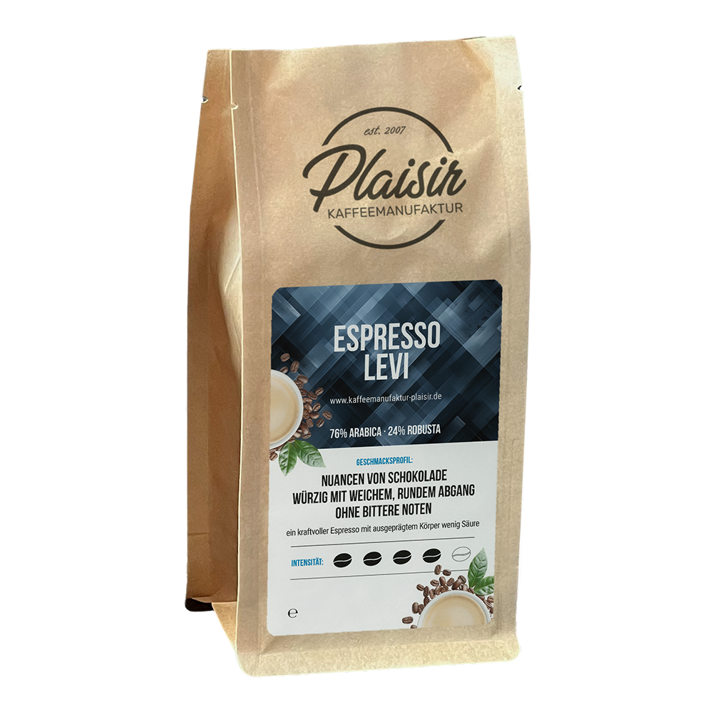 Blend aus einem Teil Brasil, einem Hauch ostafrikanischer Arabicabohne, indischem, gewaschenem Robusta und einem großen Anteil Monsooned (dem Monsun ausgesetzten) Malabar aus Südindien. Der Malabar und der gewaschene indische Robusta verleihen dem Espresso einen kräftigen italienischen Charakter ohne bittere Noten. Er zeichnet sich durch seine schokoladigen Nuancen mit rundem Abgang aus.