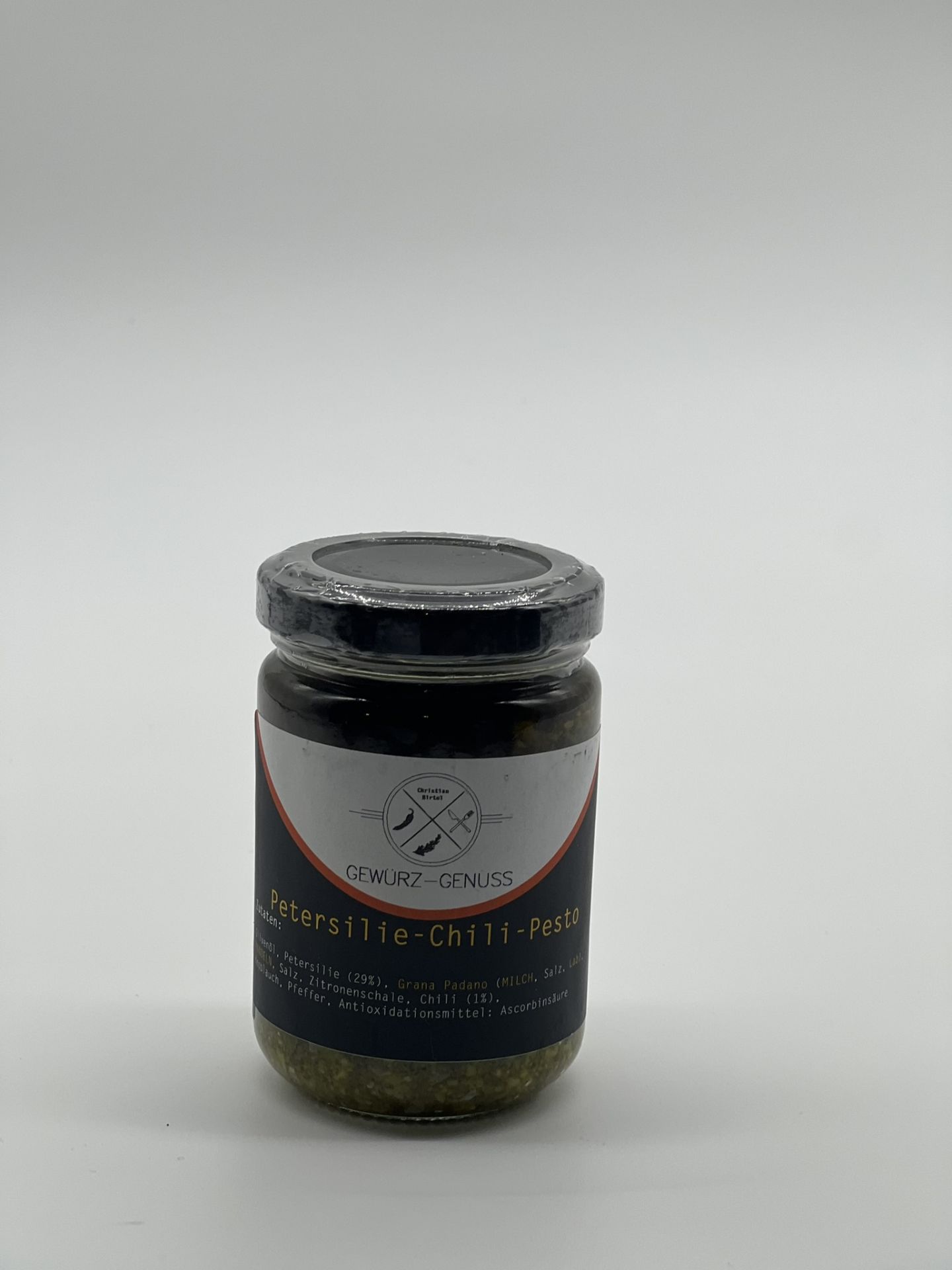 Unser Petersilie-Chili-Pesto passt optimal zu frischen Tomaten und Mozzarella oder auch zu verschiedenen Nudelgerichten.